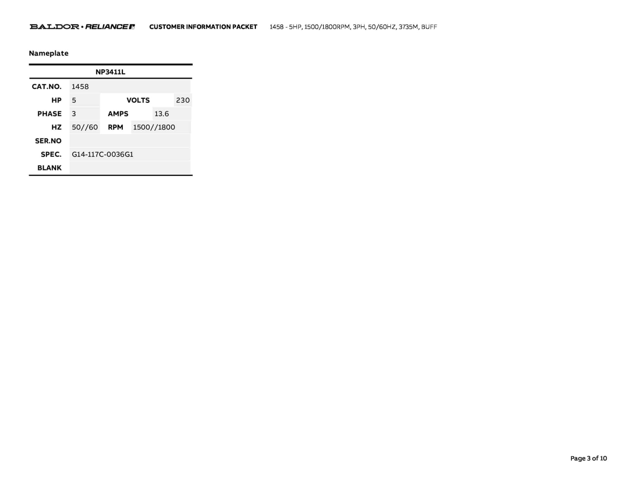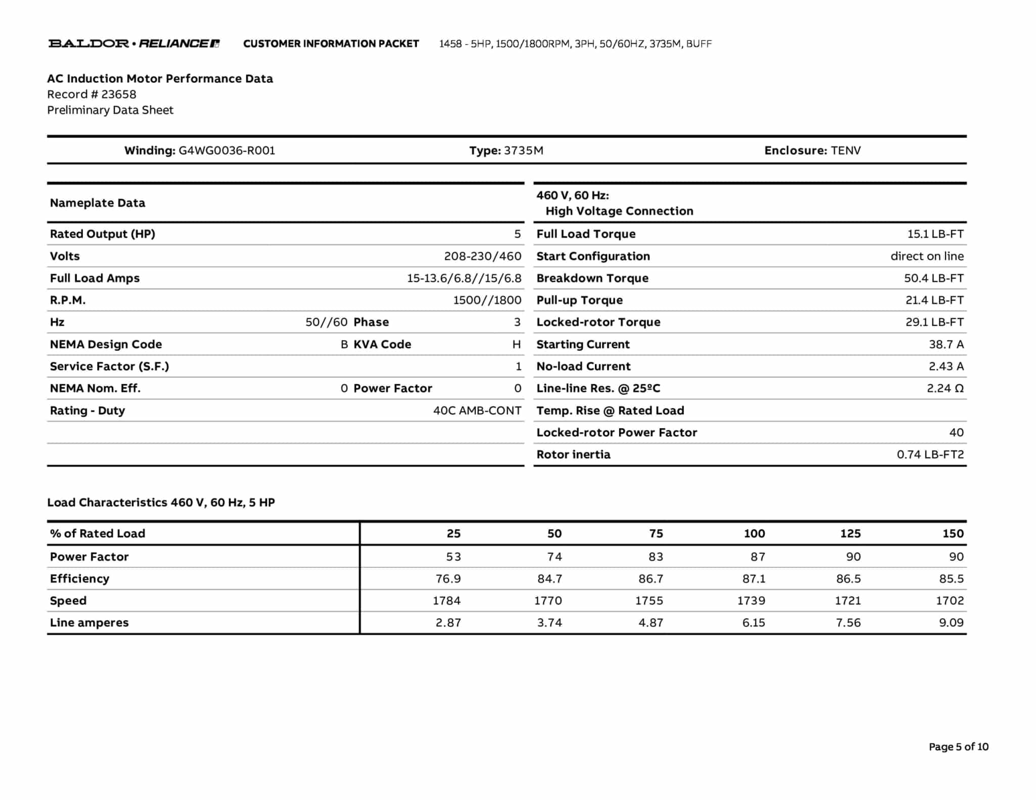 5HP,1500/1800RPM,3PH,50/60HZ,3735M,BUFF