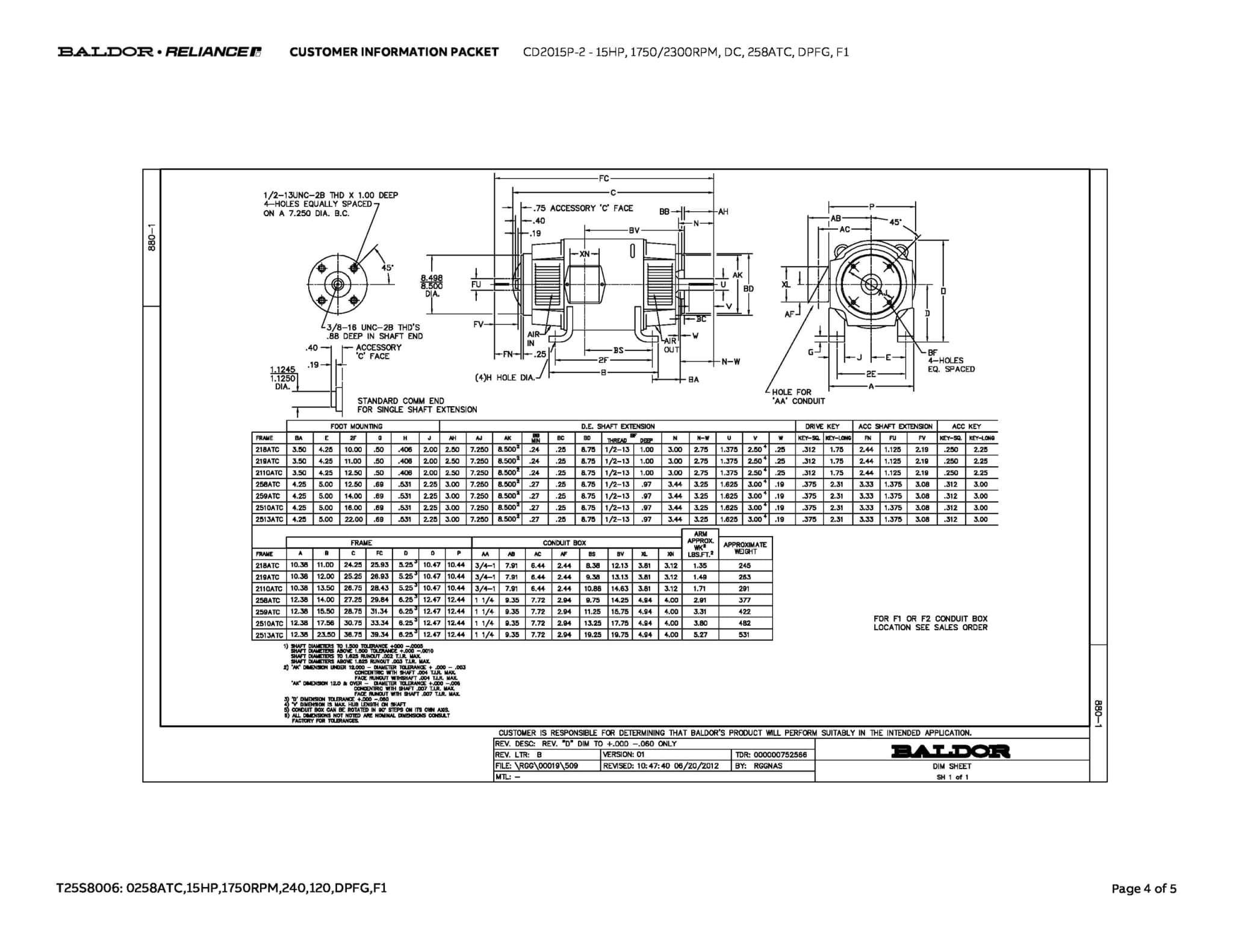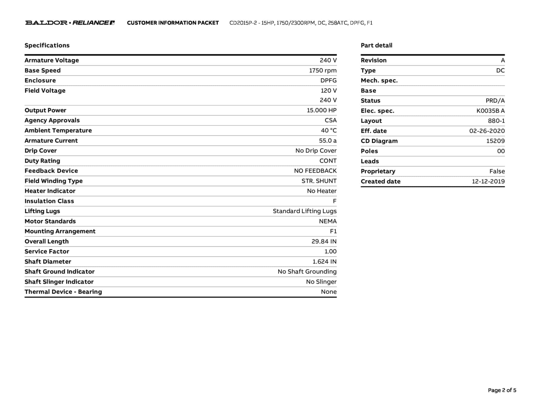 15HP,1750/2300RPM,DC,258ATC,DPFG,F1