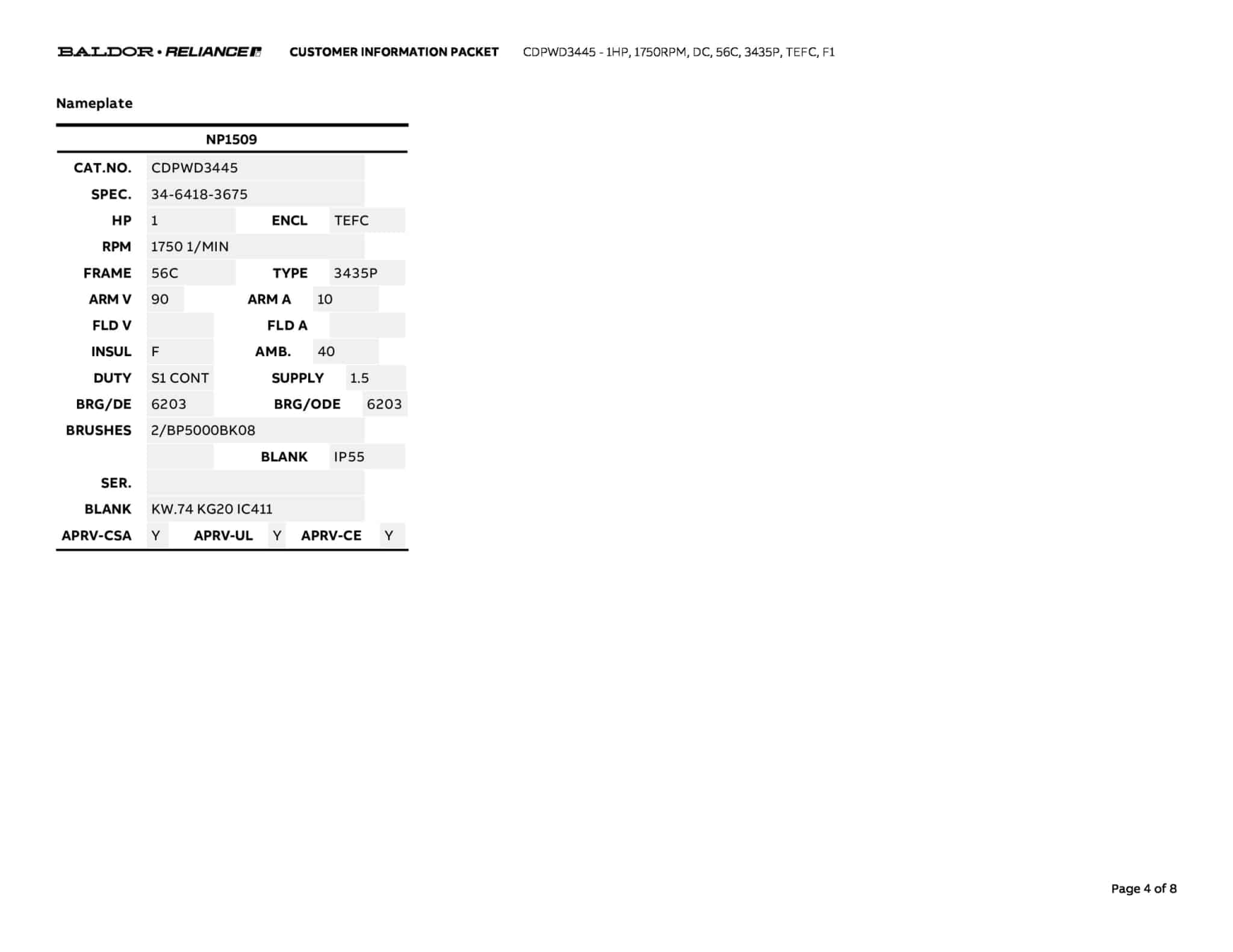 Baldor 1 HP, 1750 RPM, DC, 56C, 3435P, TEFC, F1 - CDPWD3445 - Image 8