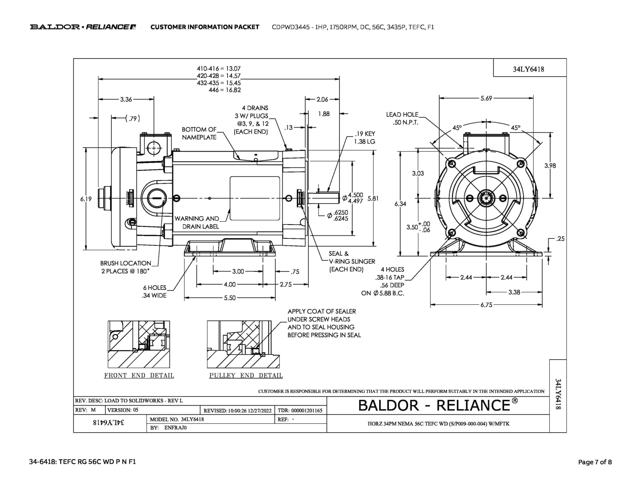 Baldor 1 HP, 1750 RPM, DC, 56C, 3435P, TEFC, F1 - CDPWD3445 - Image 7