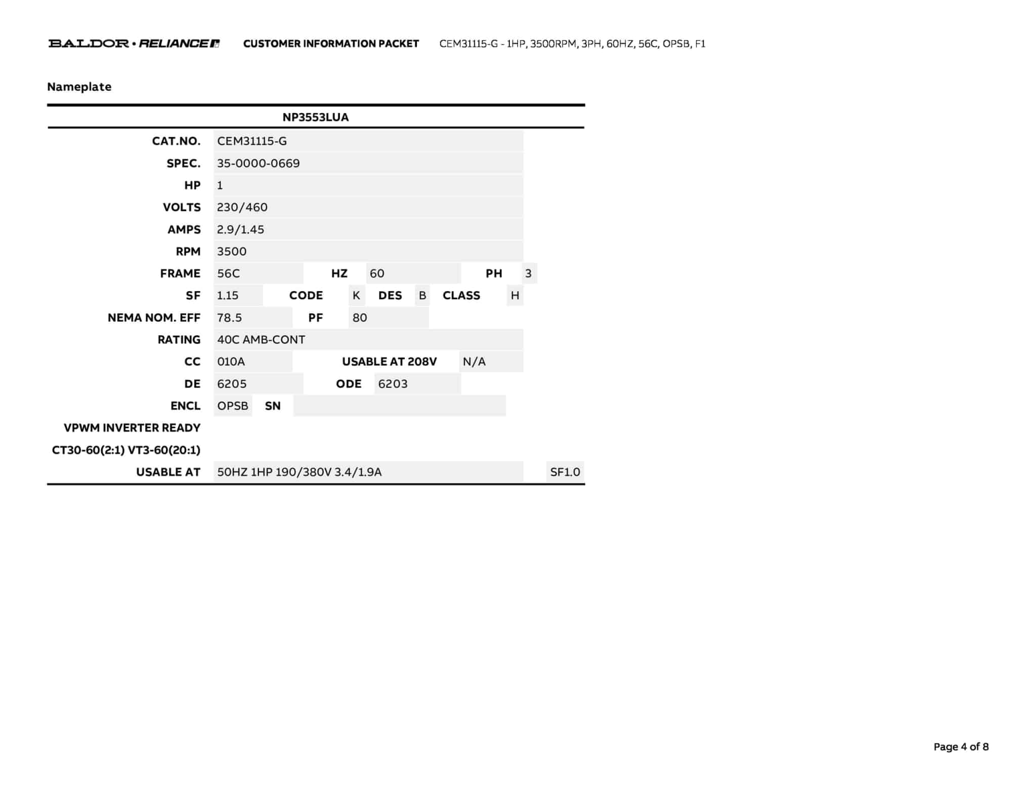 Manufacturer | Baldor | ||