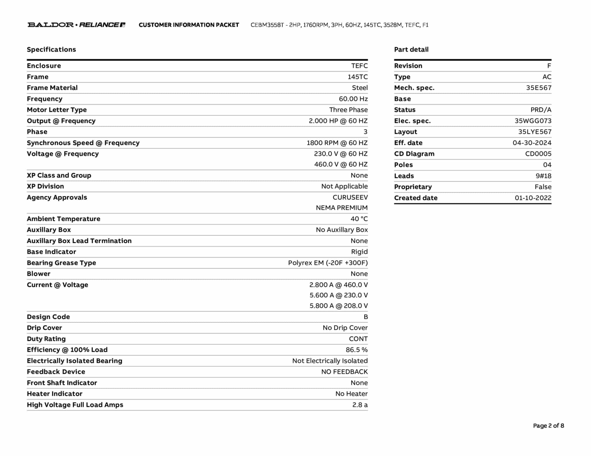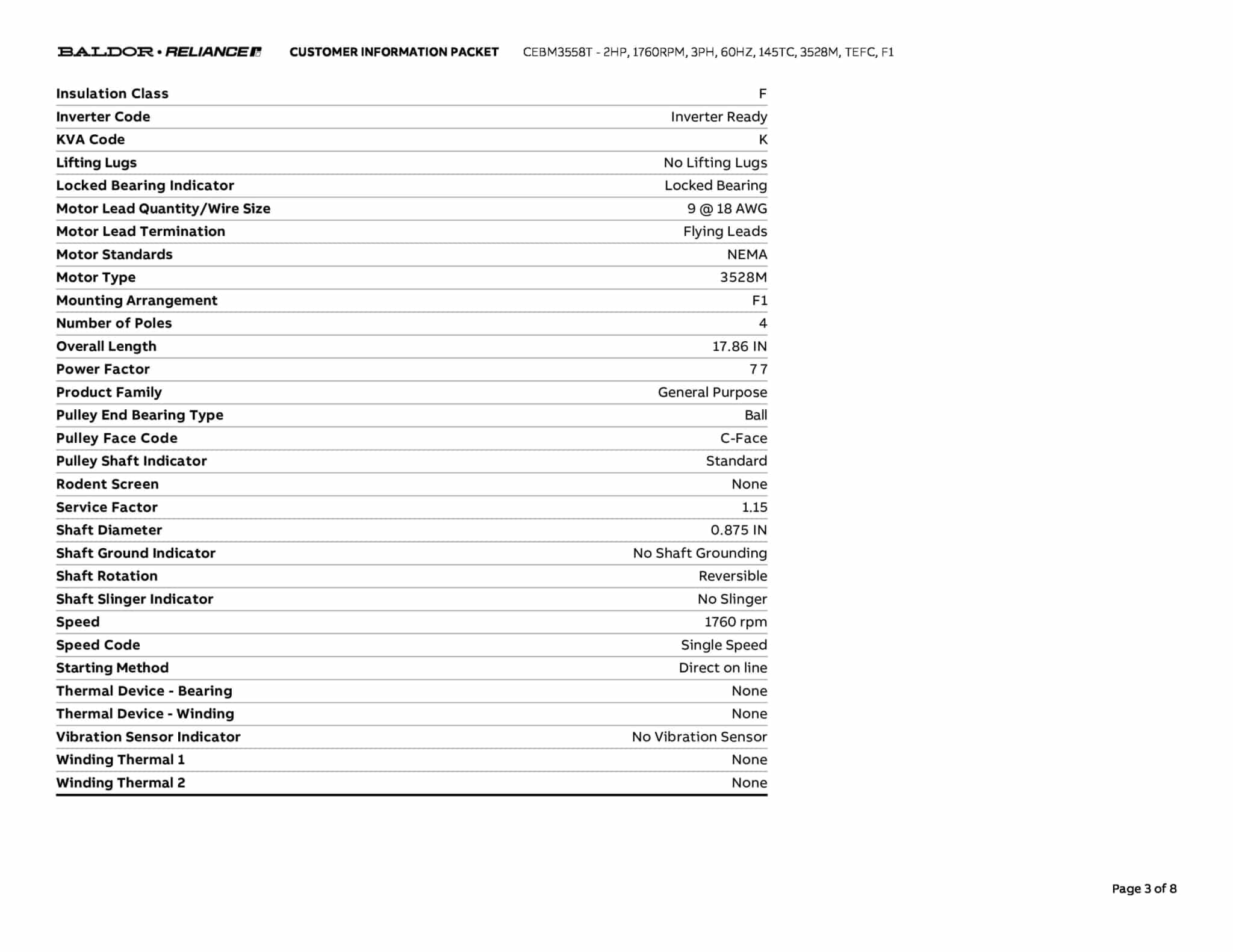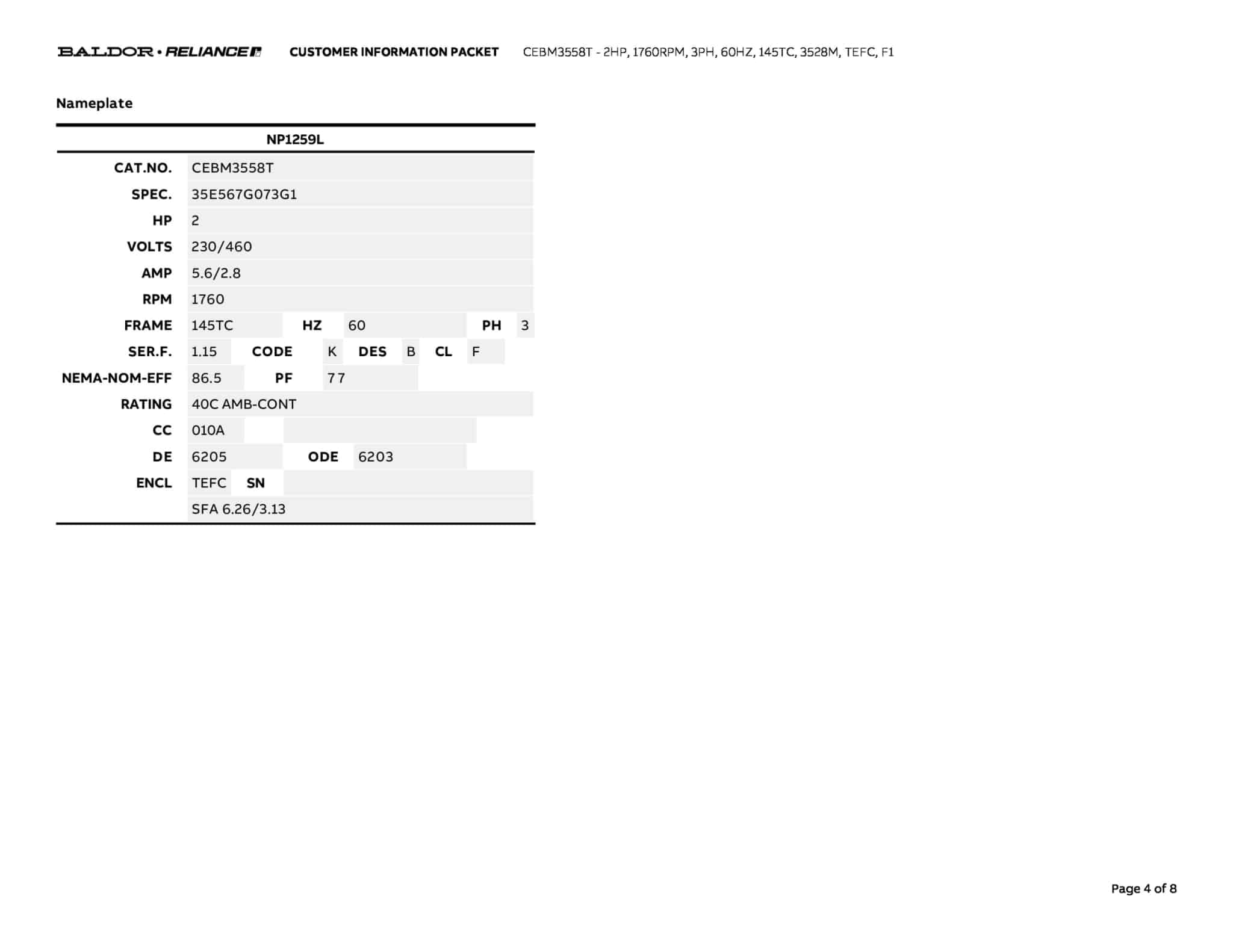 | Manufacturer | Baldor | ||