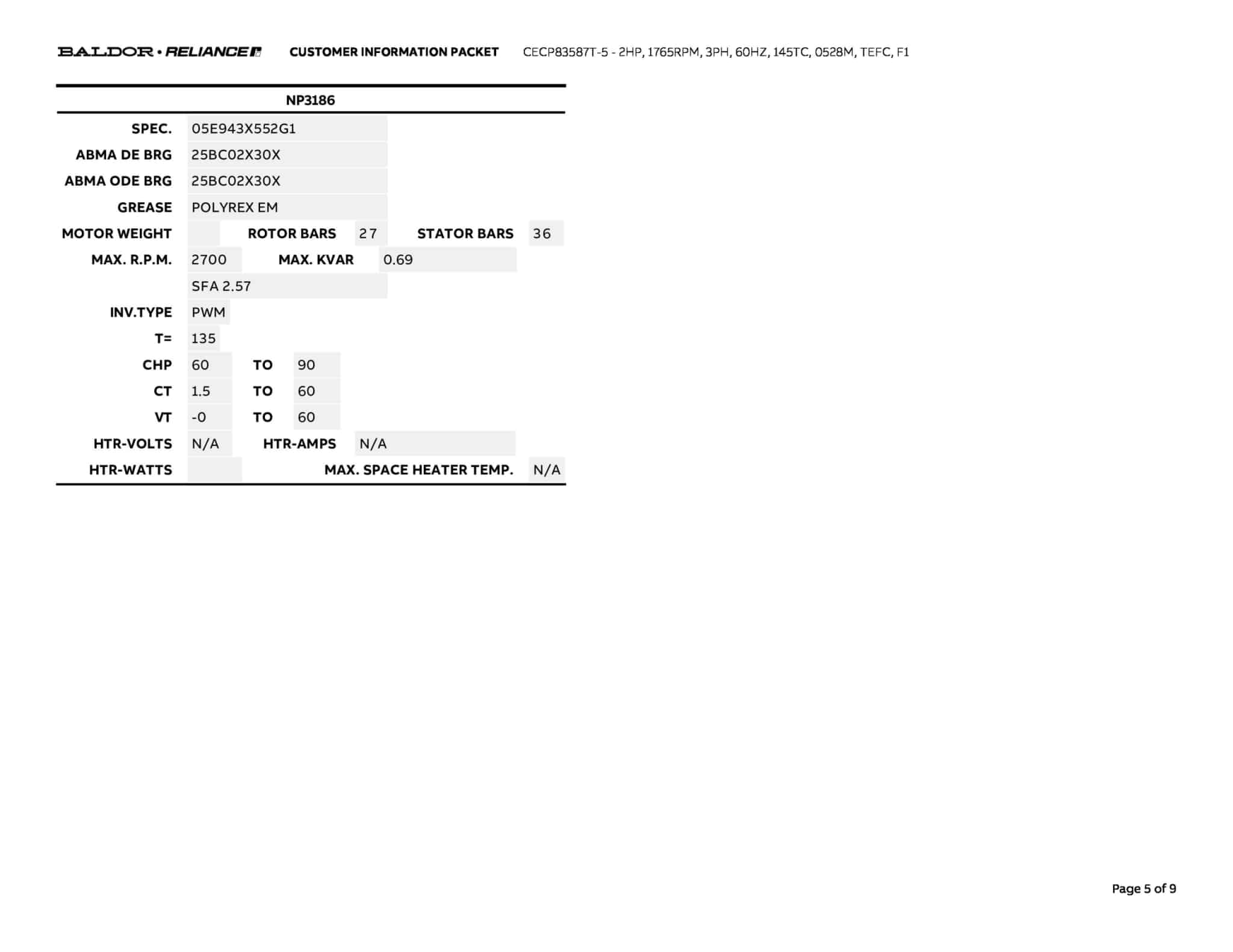 RPM: | 1765 | ||