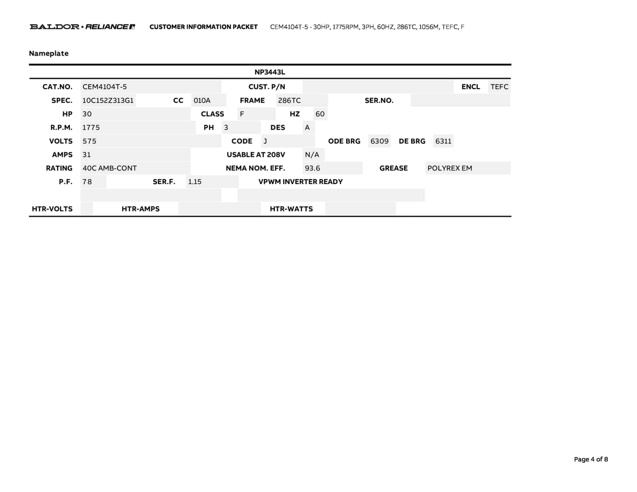 Manufacturer | Baldor | ||