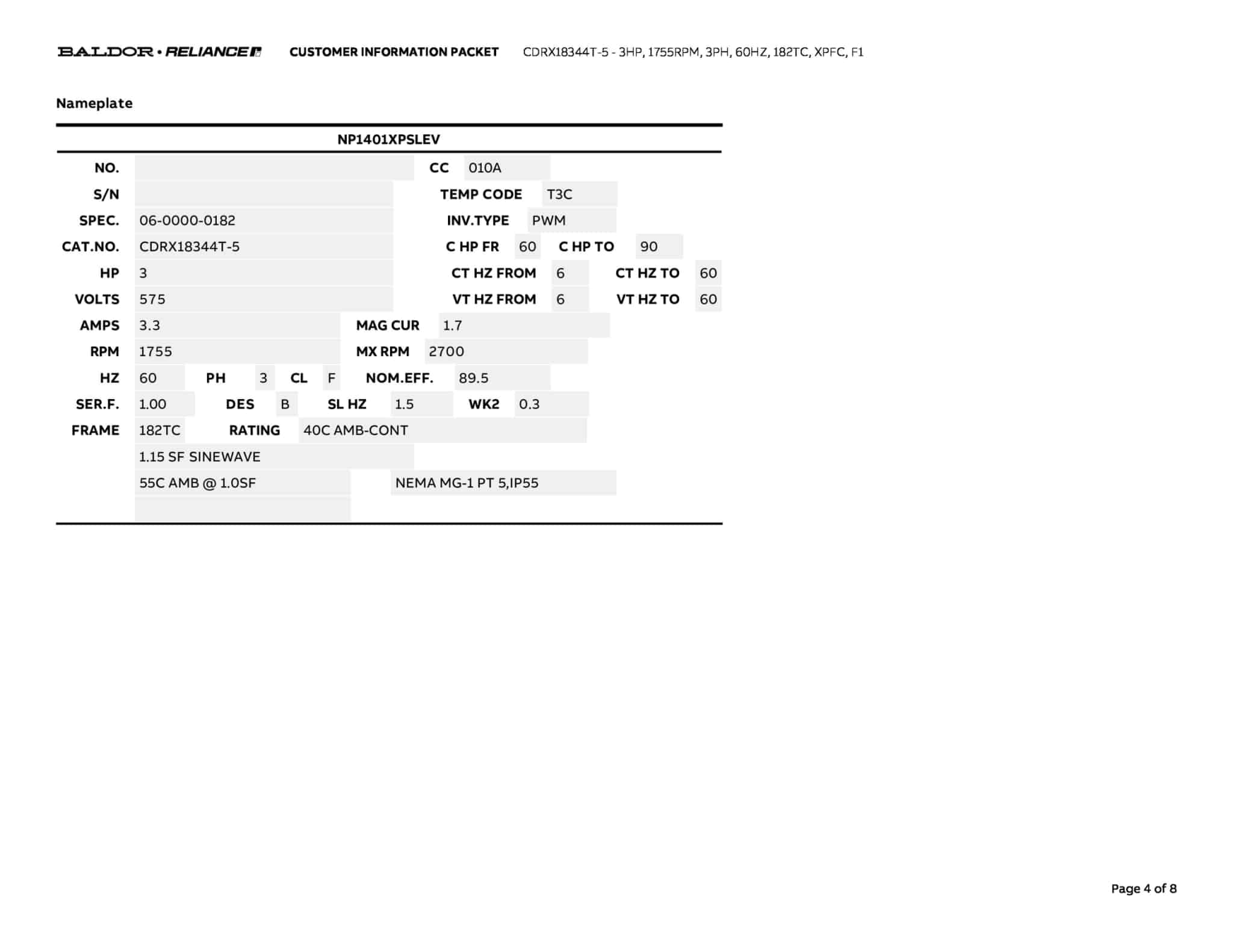 | Manufacturer | Baldor | ||