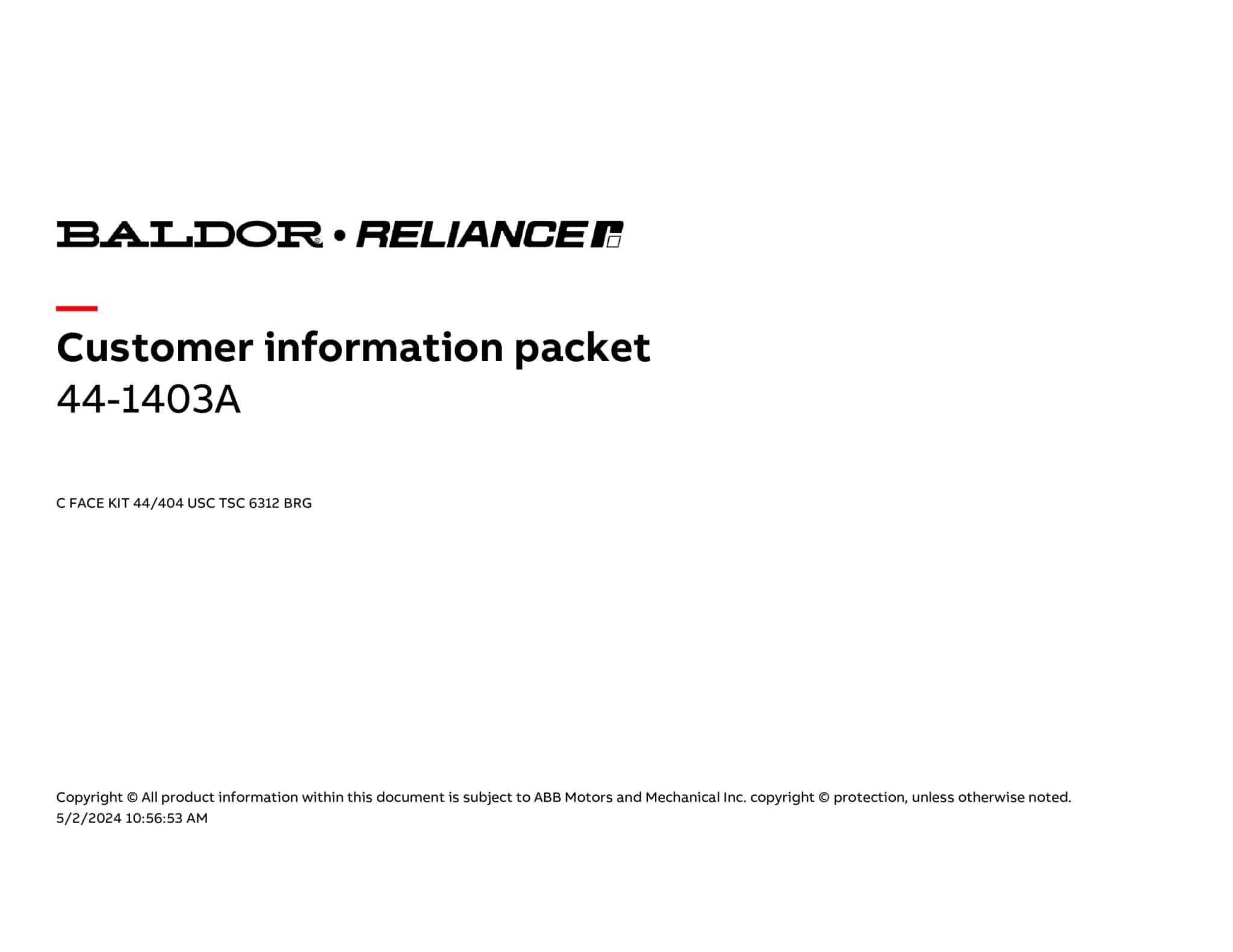 C FACE KIT 44/404 USC TSC 6312 BRG