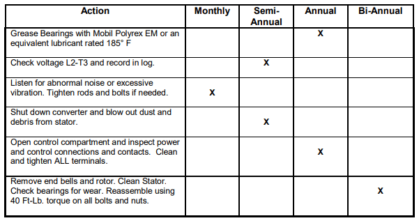 - Inspect the converter periodically to verify the ventilation slots are clear. In dusty or dirty environments, remove the end-bells and clean the windings of excess grease, dust and debris.