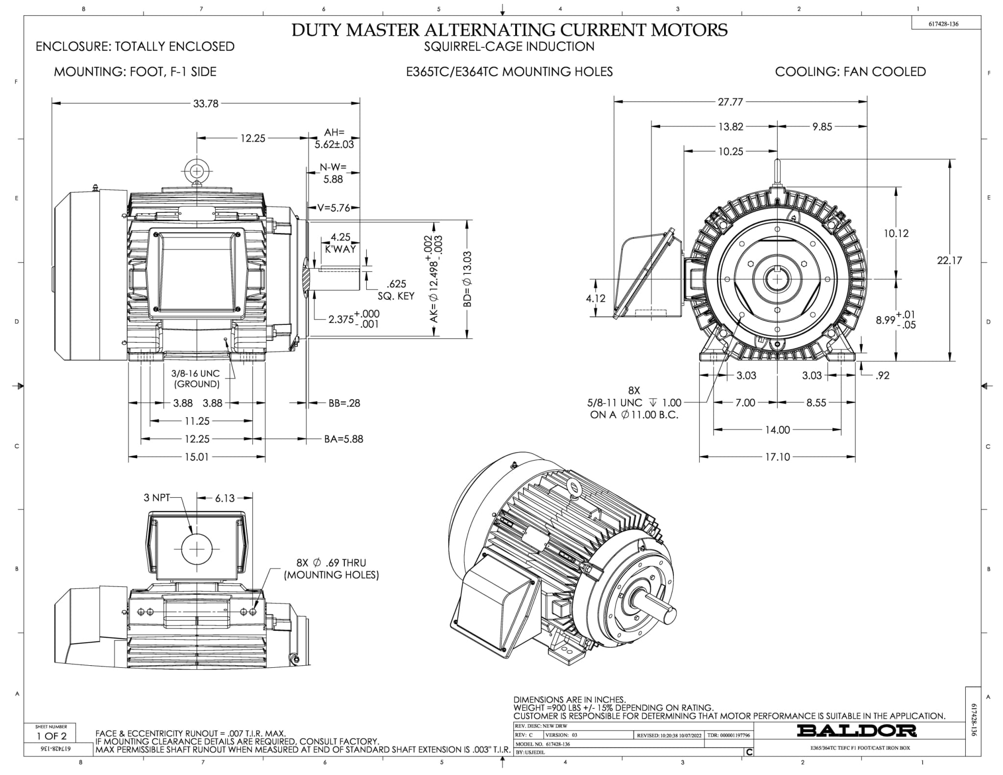 50HP,1185RPM,3PH,60HZ,365TC,A36062M,TEFC