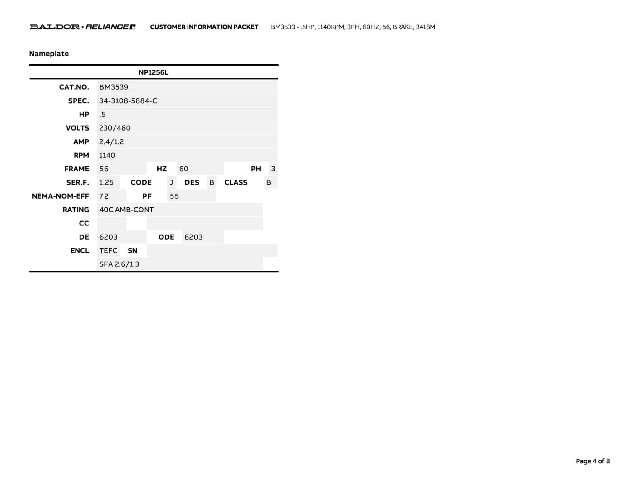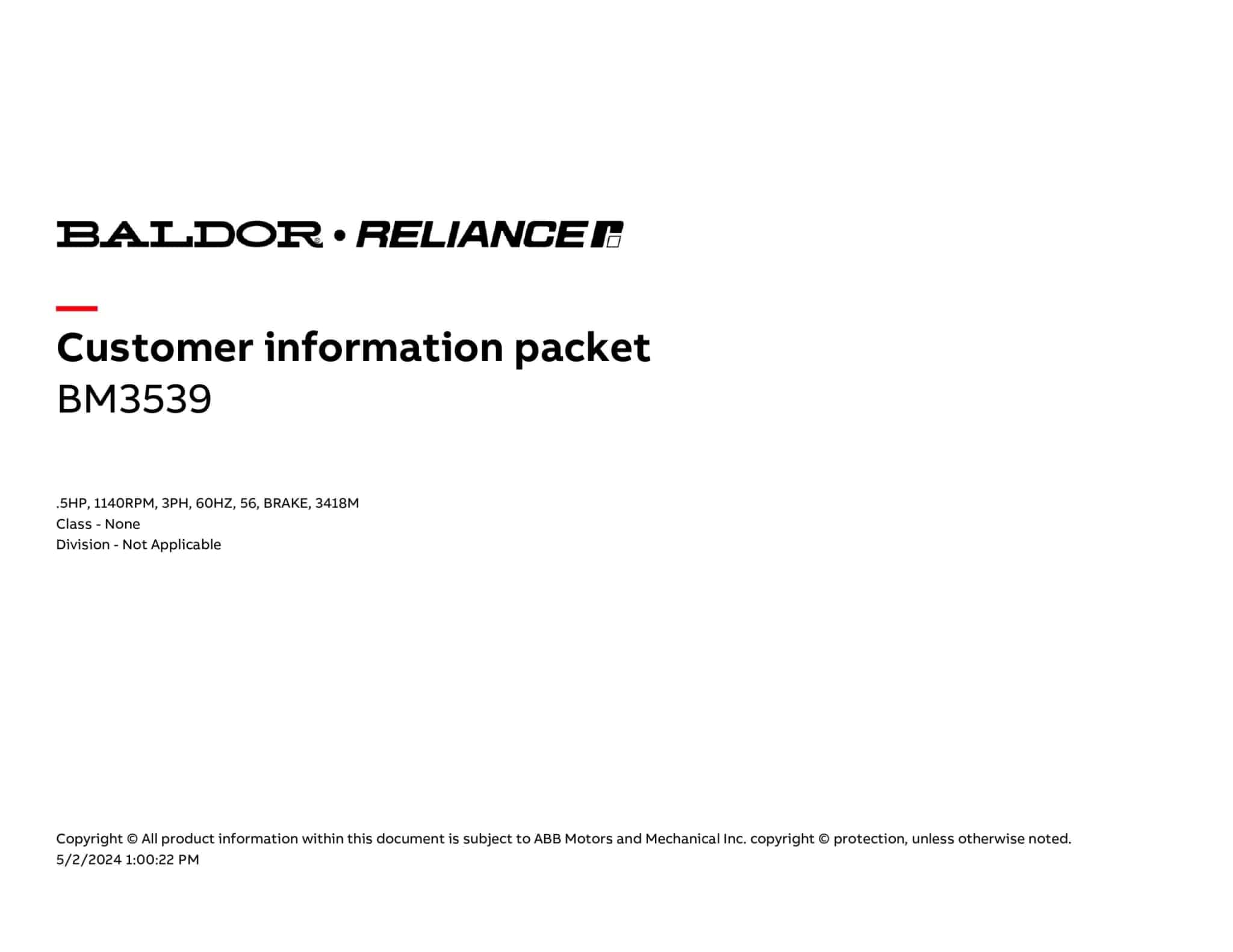 | Manufacturer | Baldor | ||