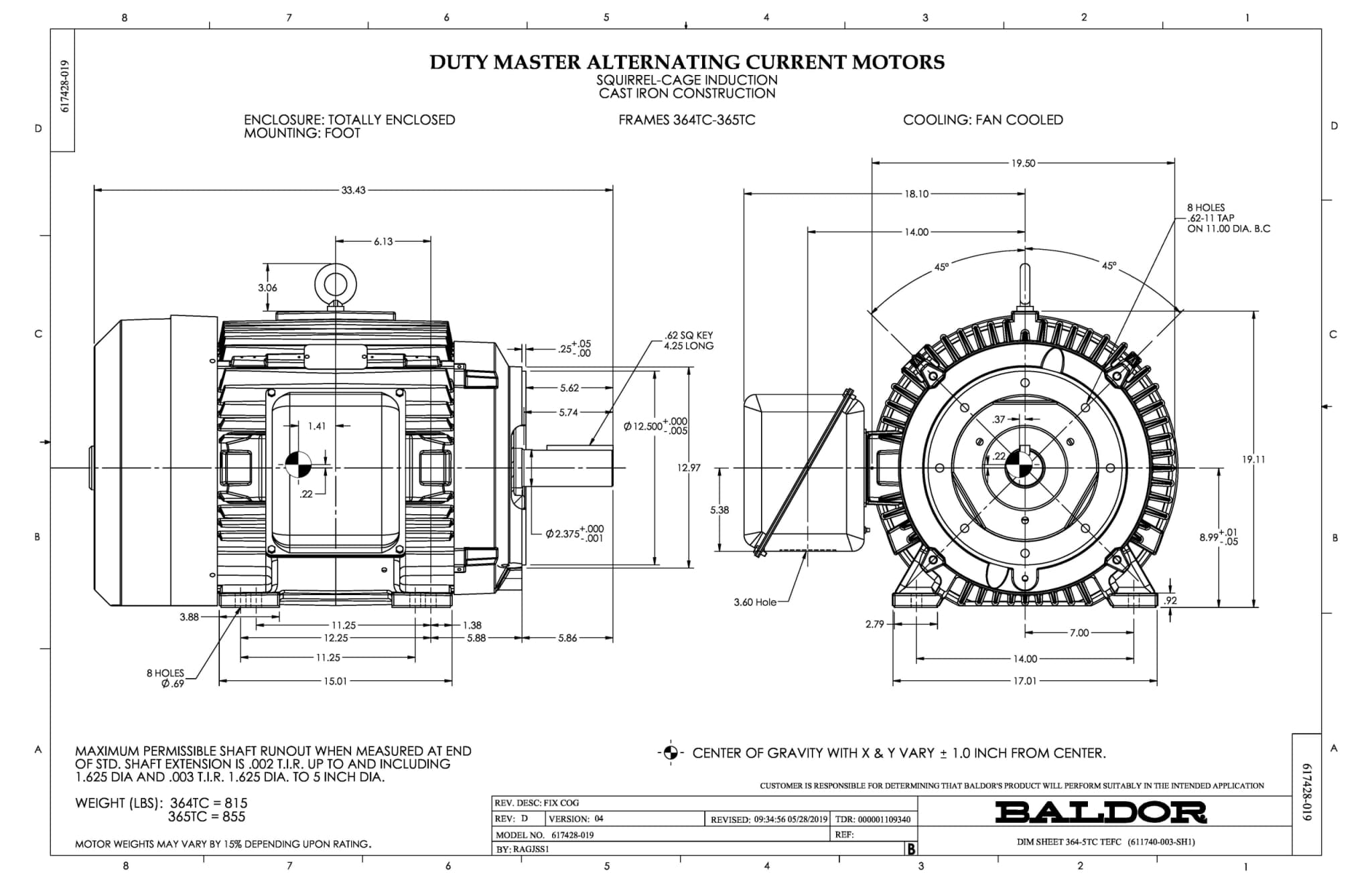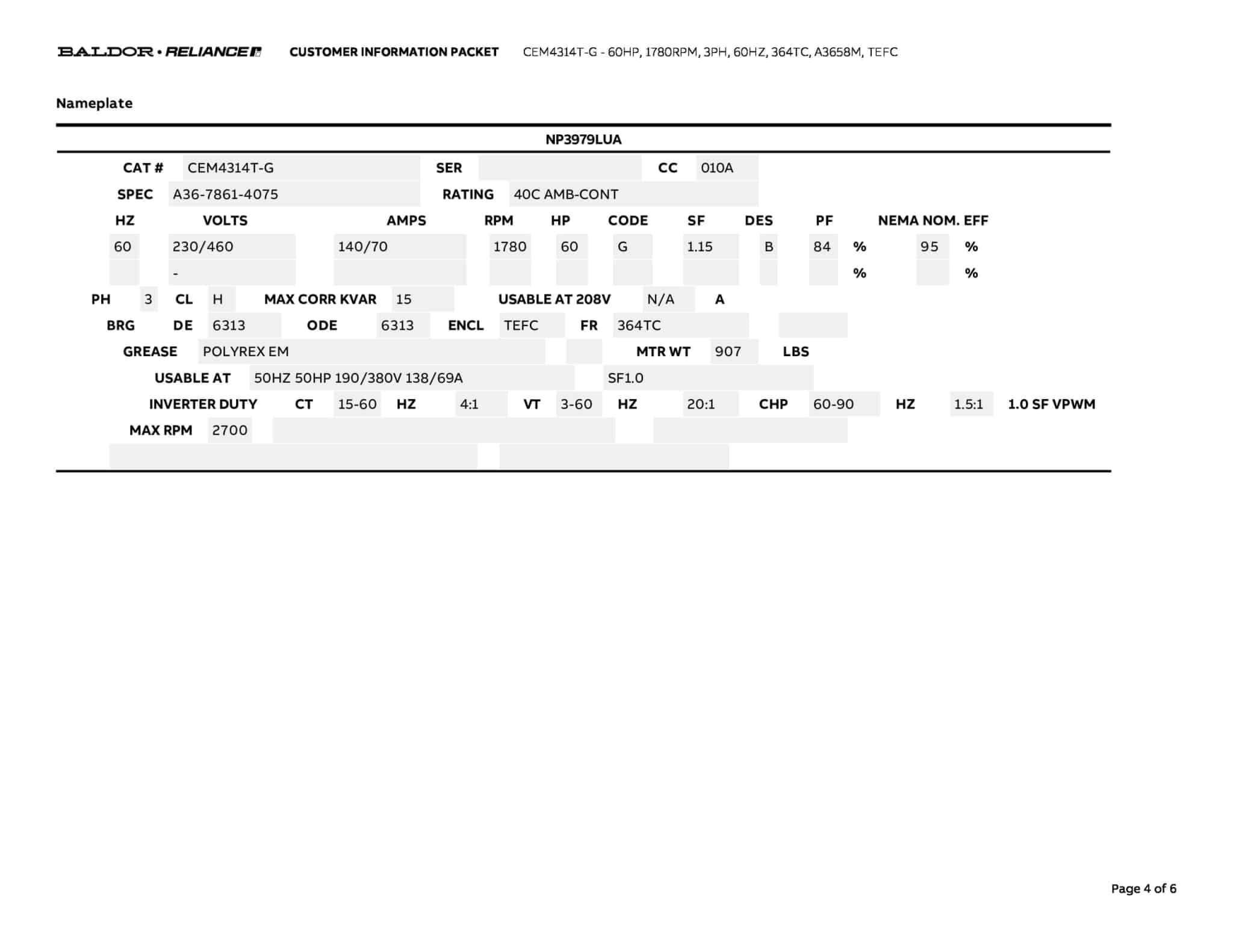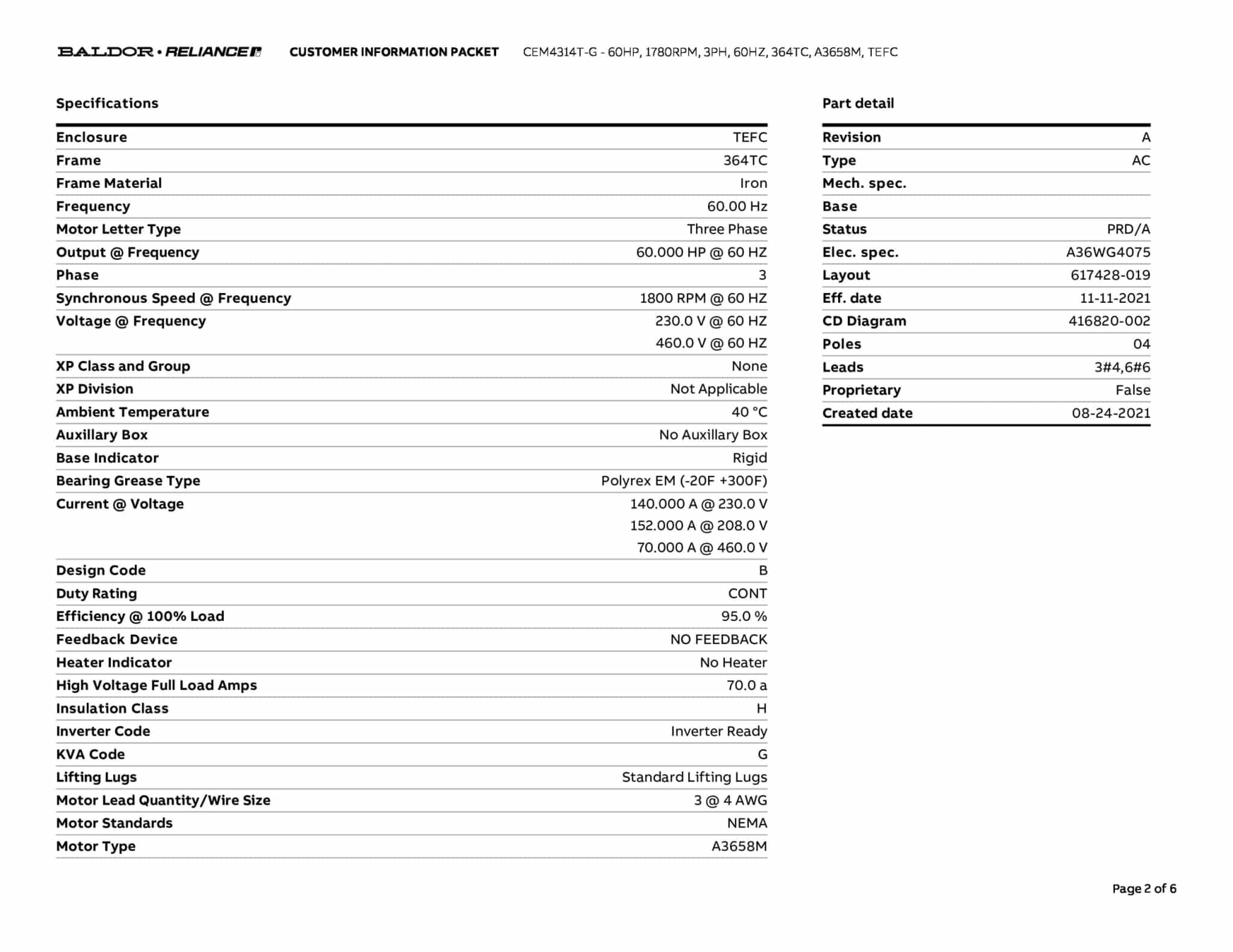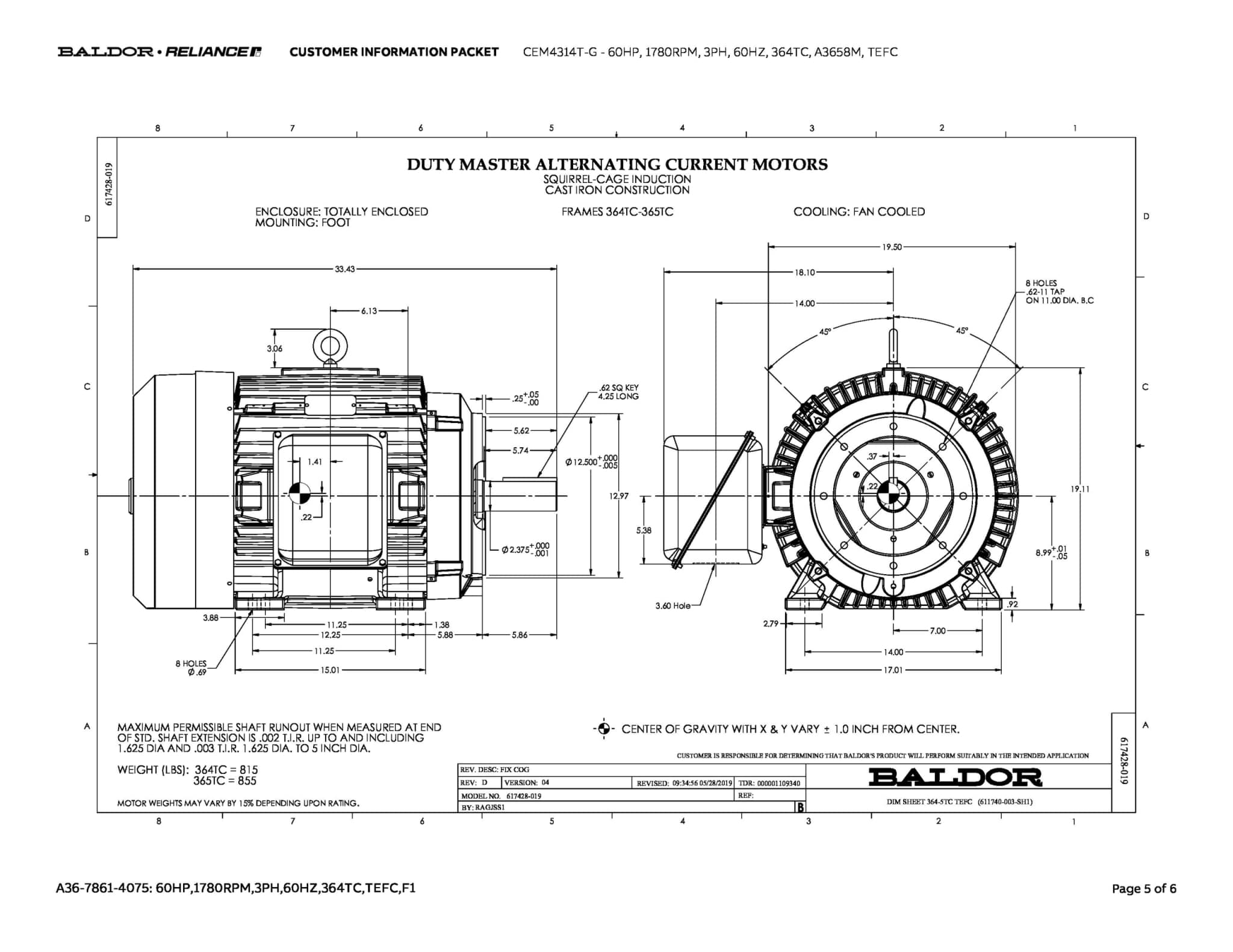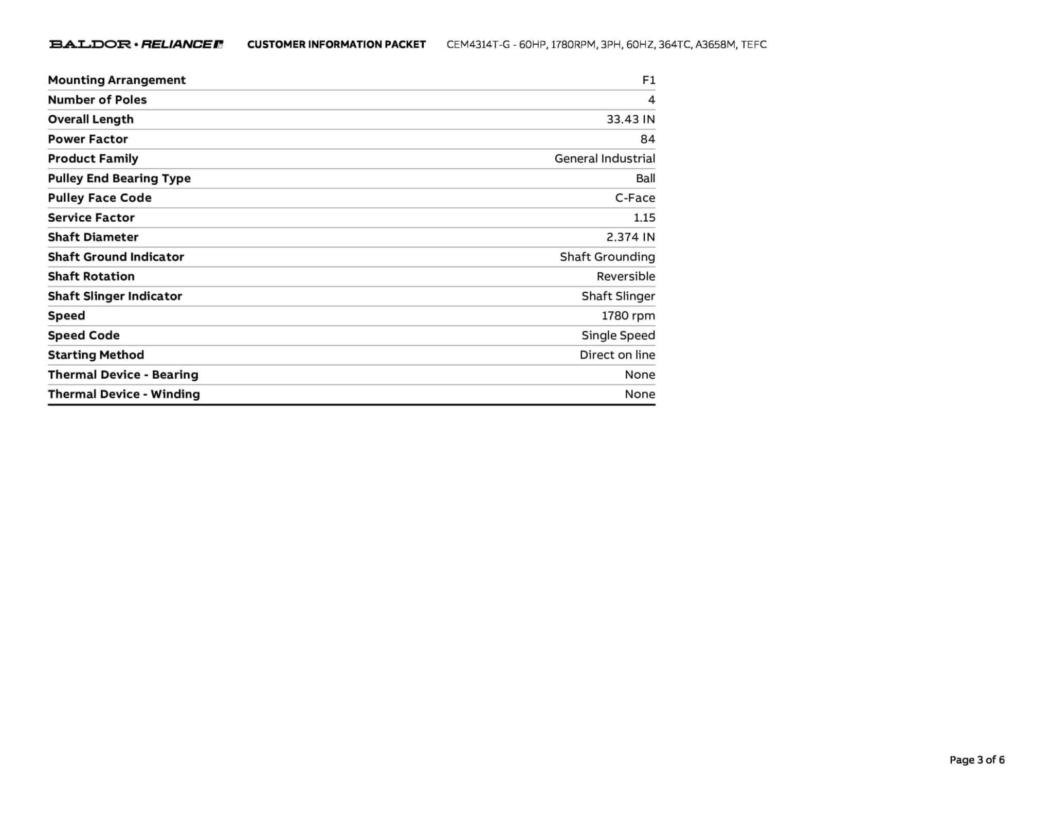 60HP,1780RPM,3PH,60HZ,364TC,A3658M,TEFC