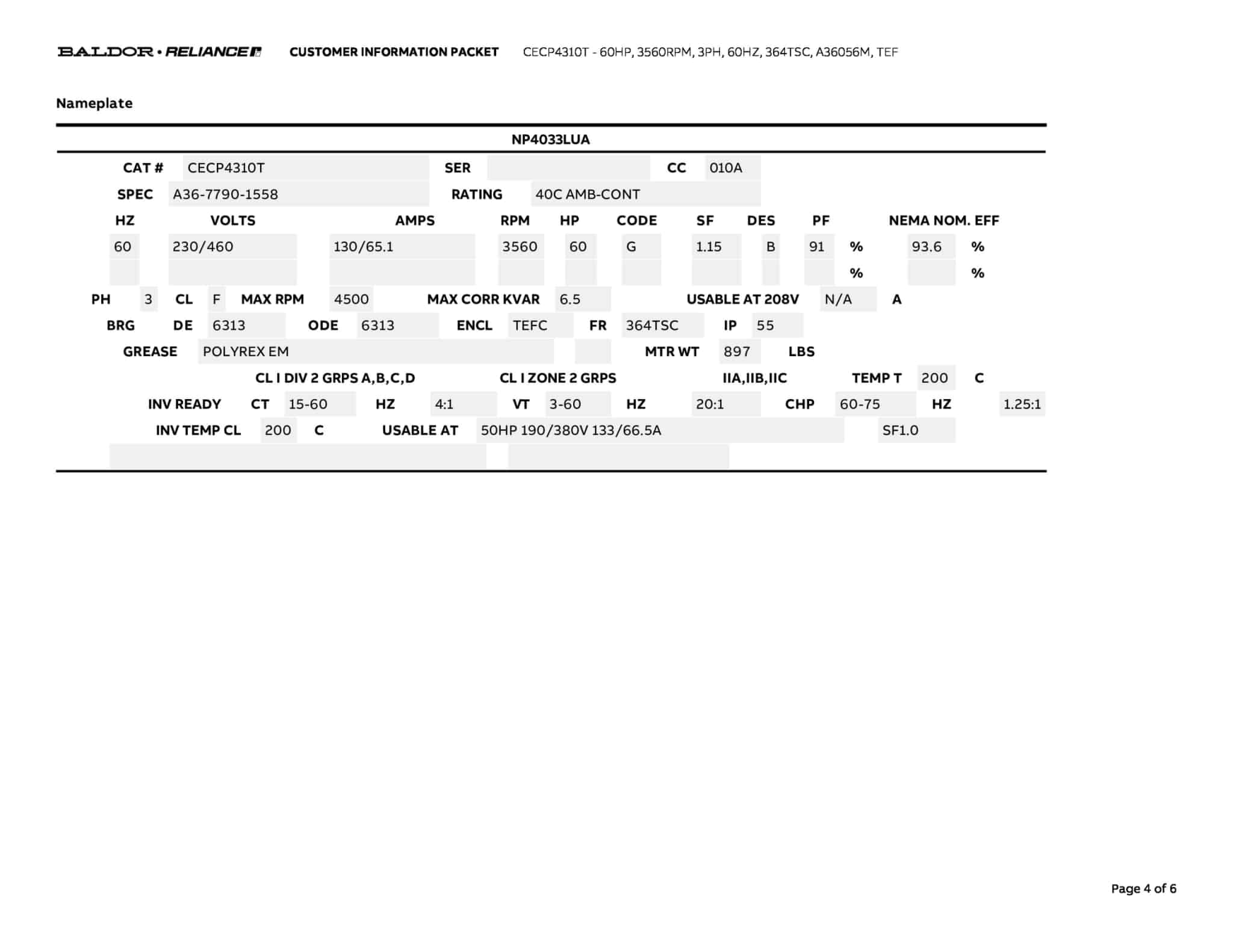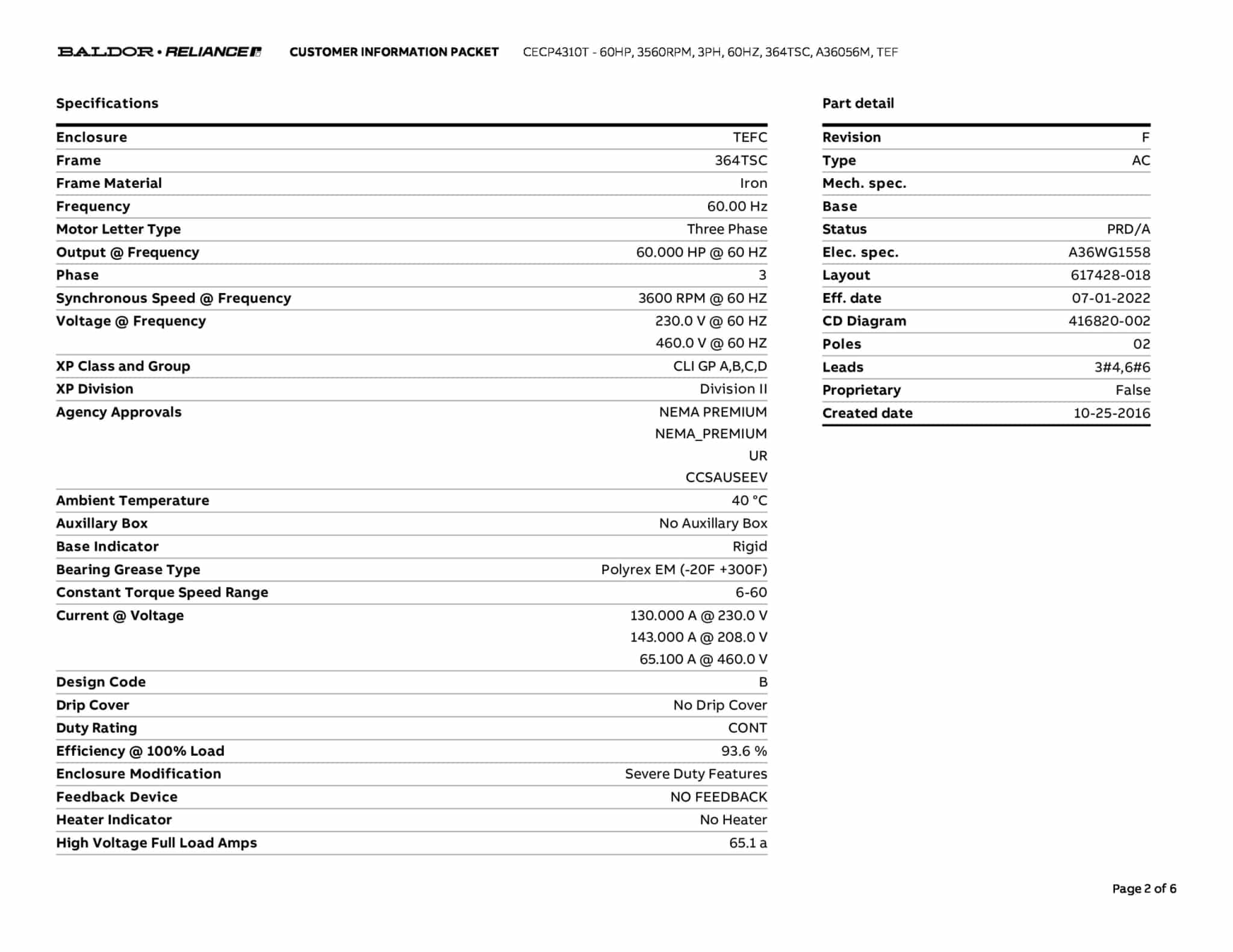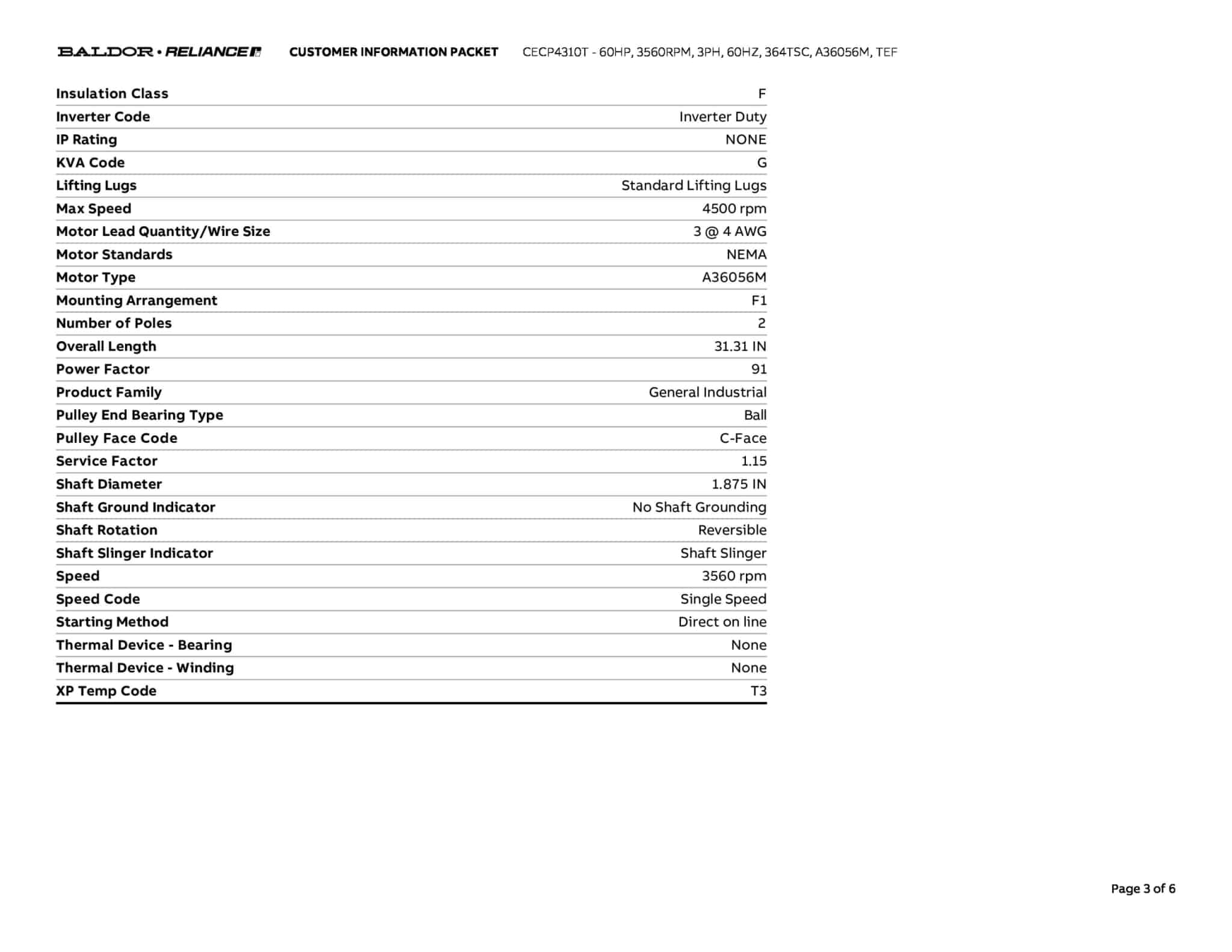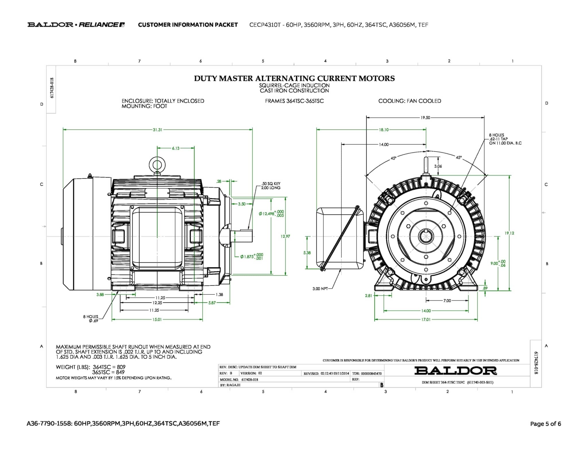 60HP,3560RPM,3PH,60HZ,364TSC,A36056M,TEF