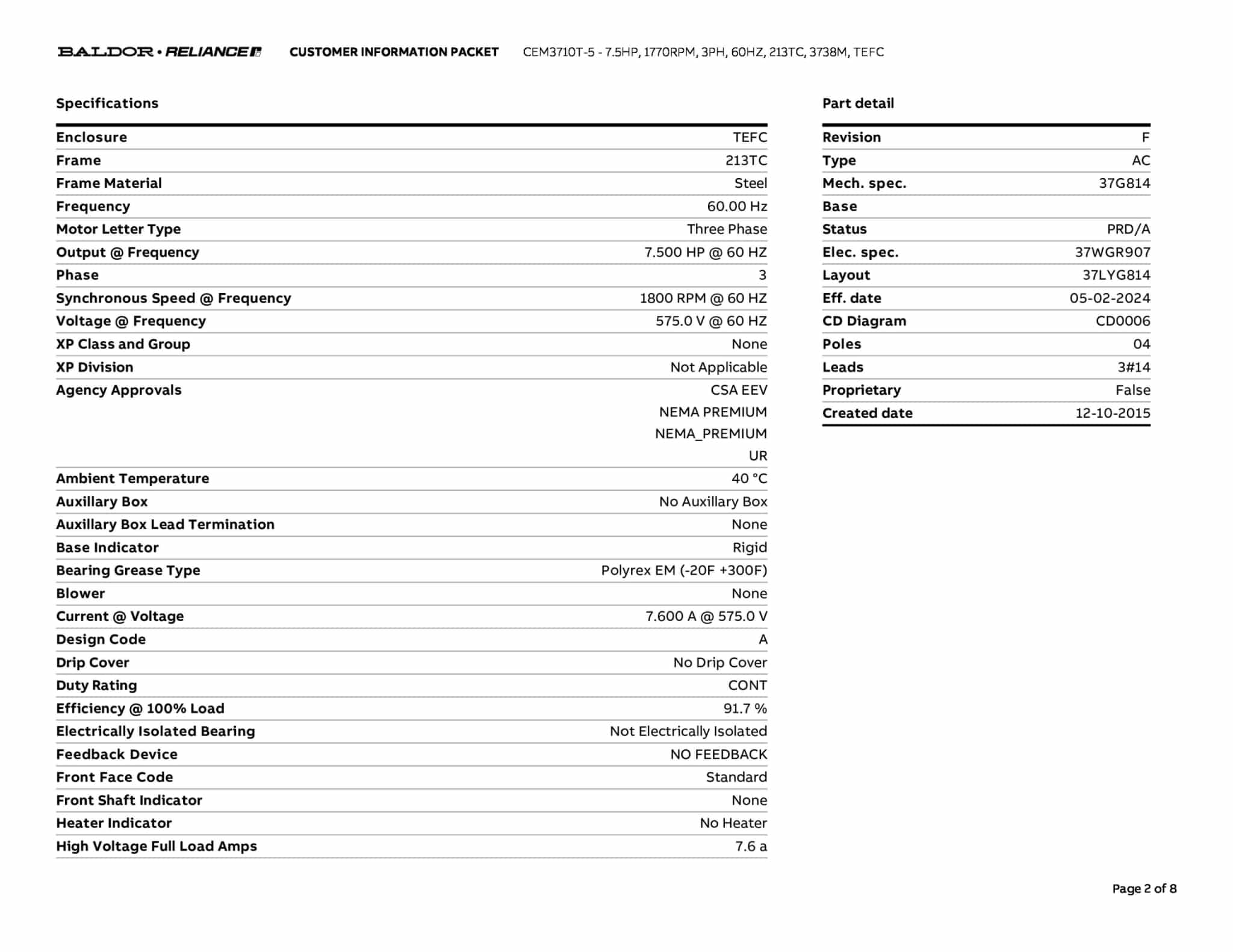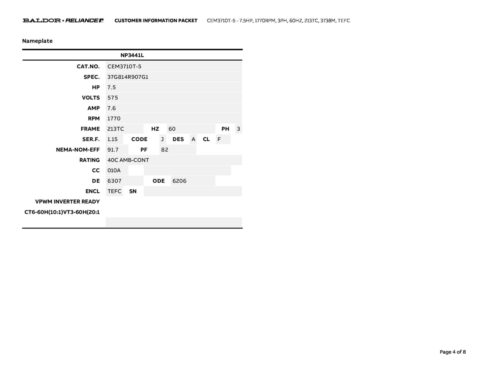 | Manufacturer | Baldor | ||