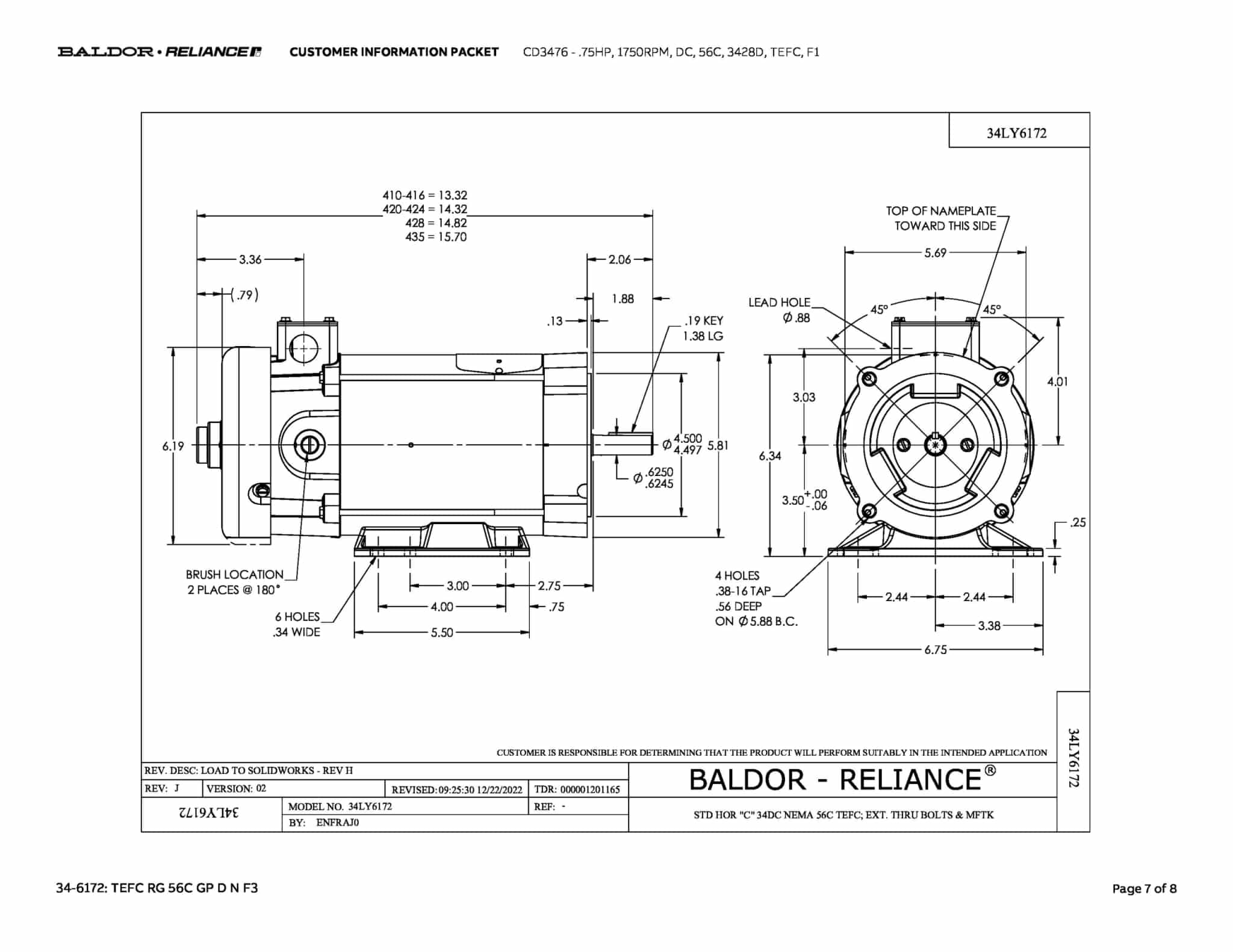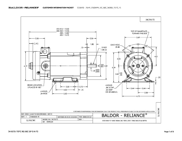 .75HP,1750RPM,DC,56C,3428D,TEFC,F1
