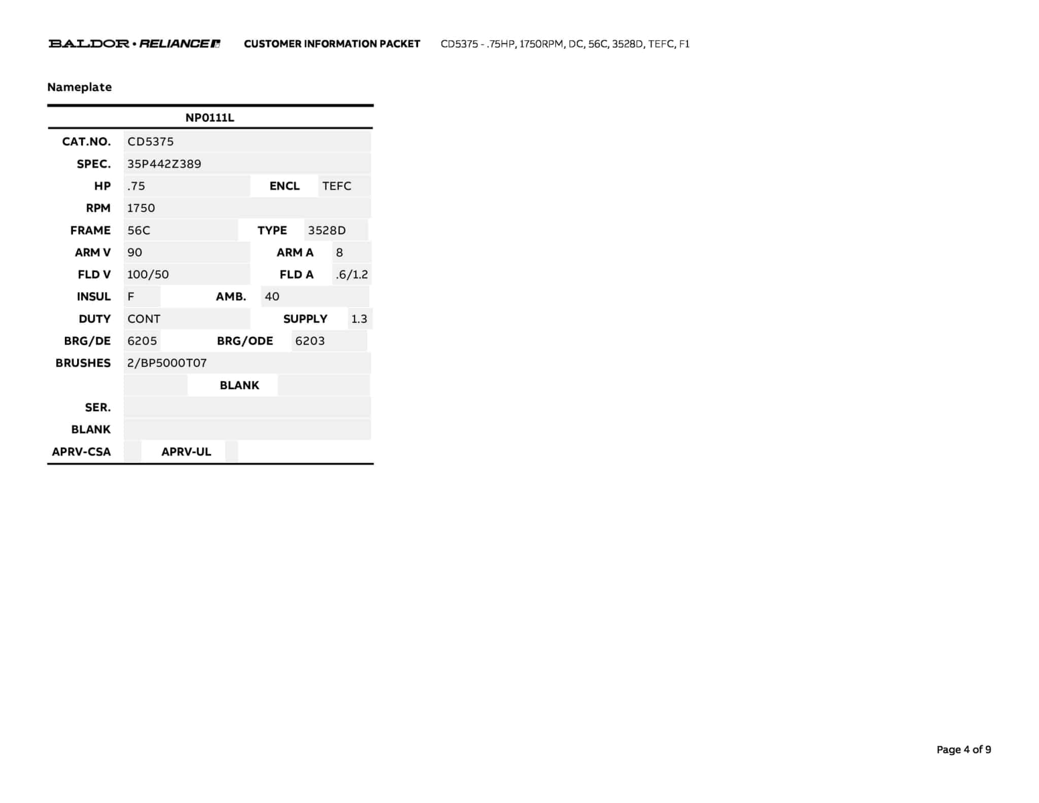 .75HP,1750RPM,DC,56C,3528D,TEFC,F1