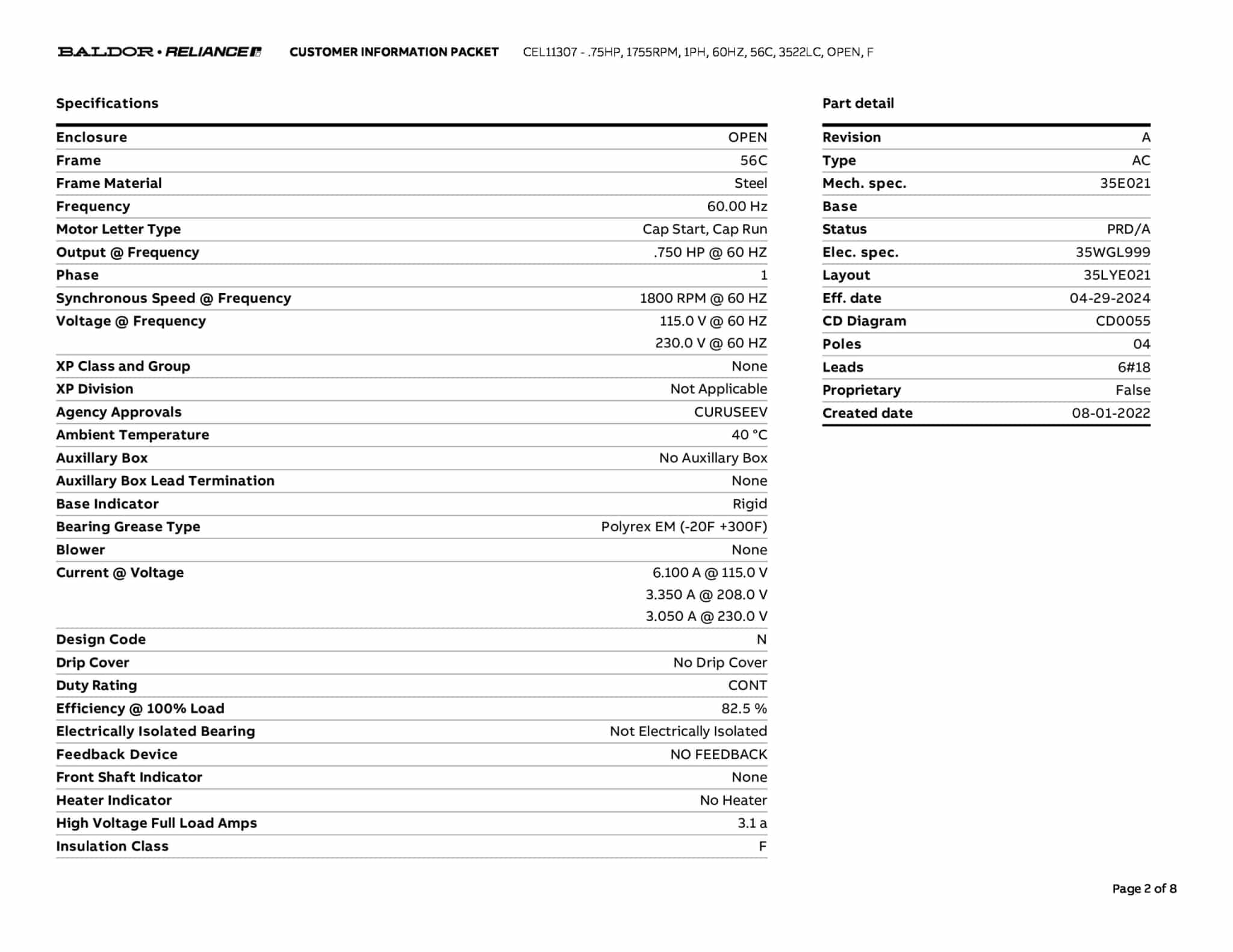 | Manufacturer | Baldor | ||