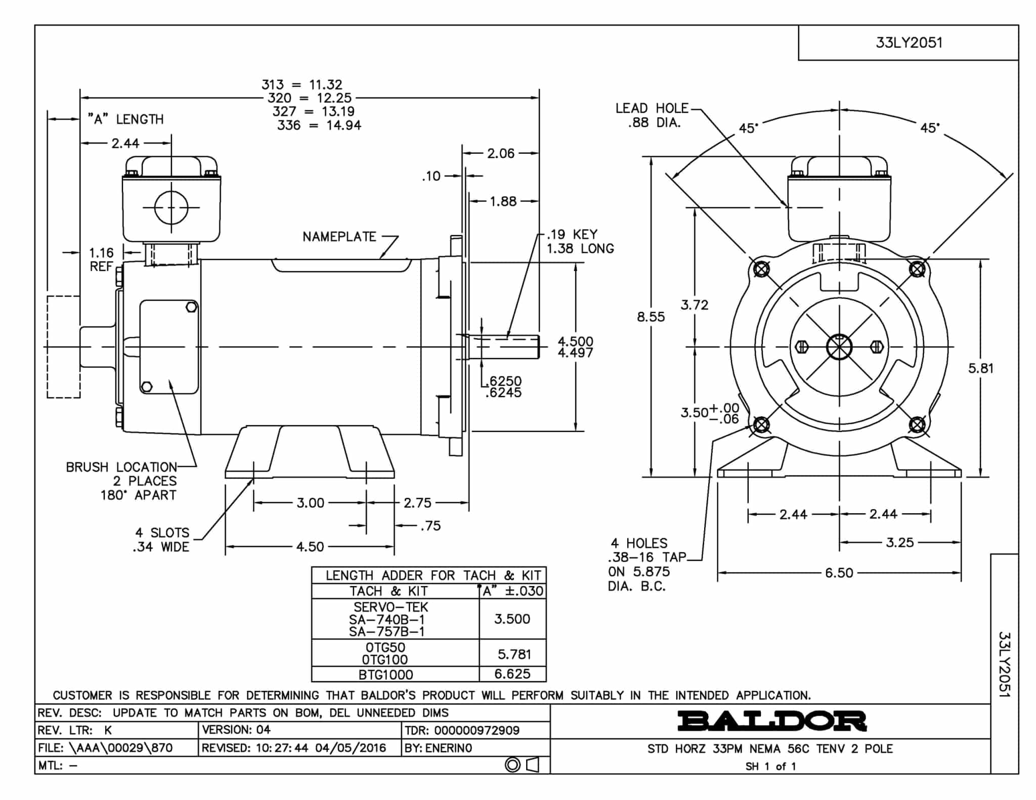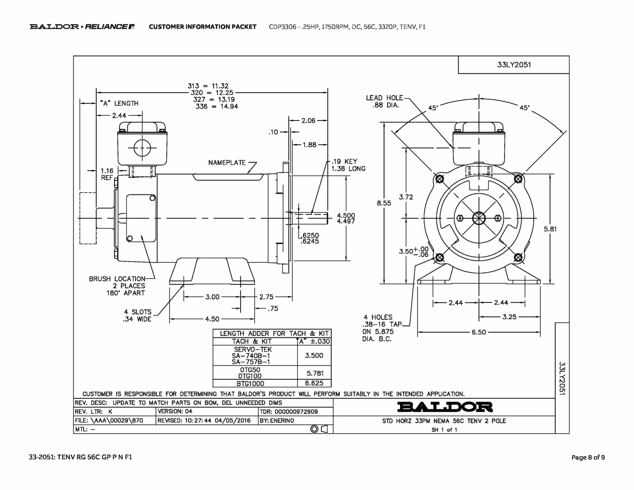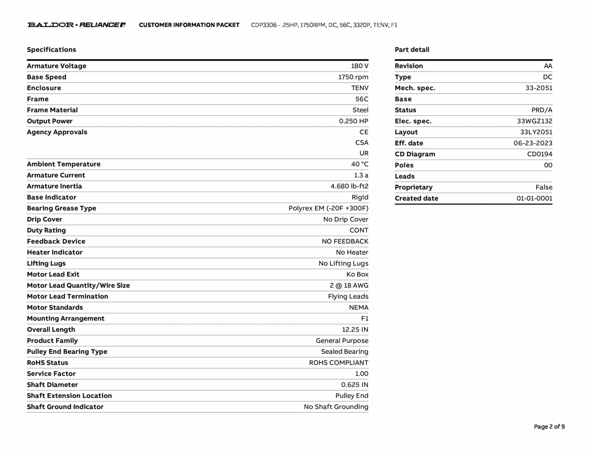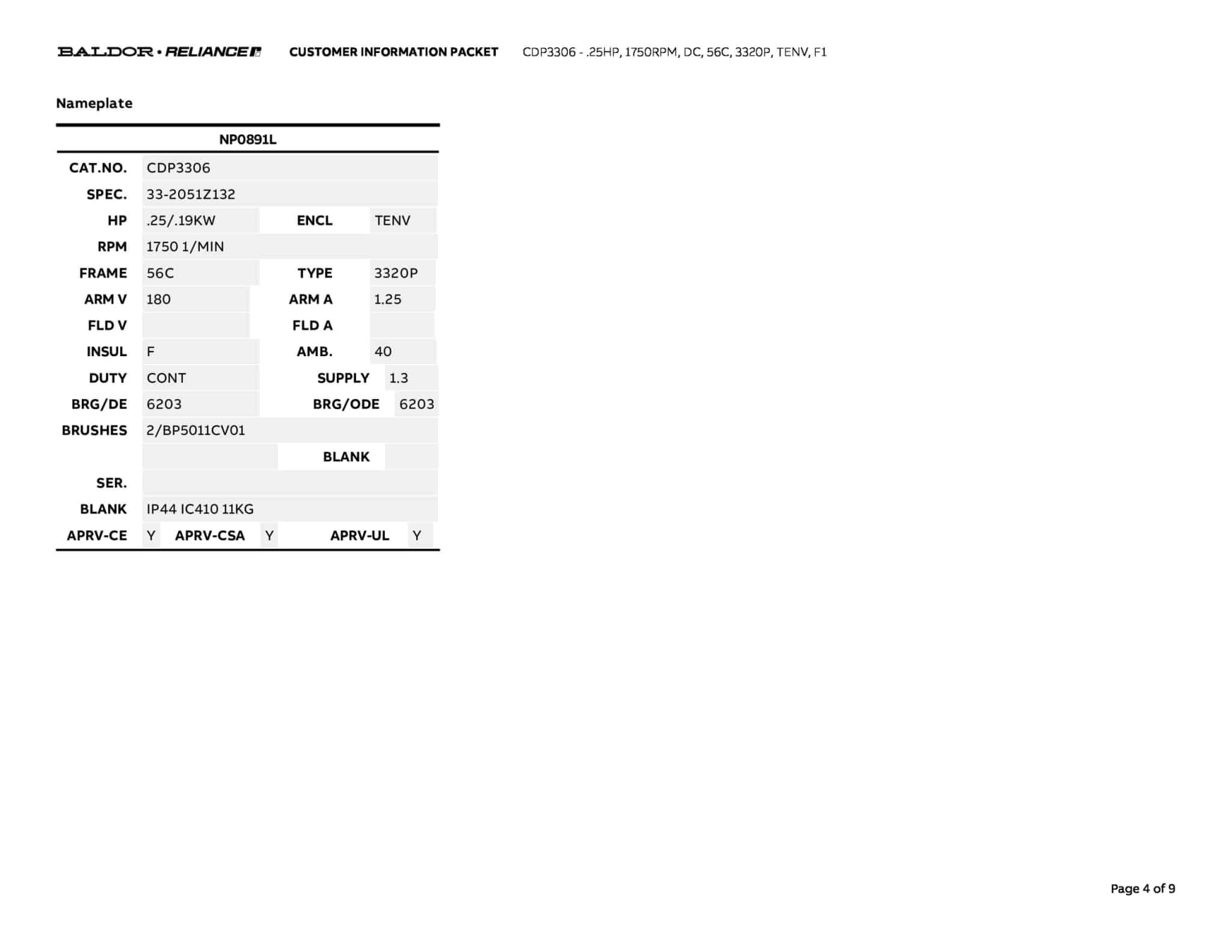 Baldor CDP3306 .25HP 1750RPM DC 56C Frame TENV