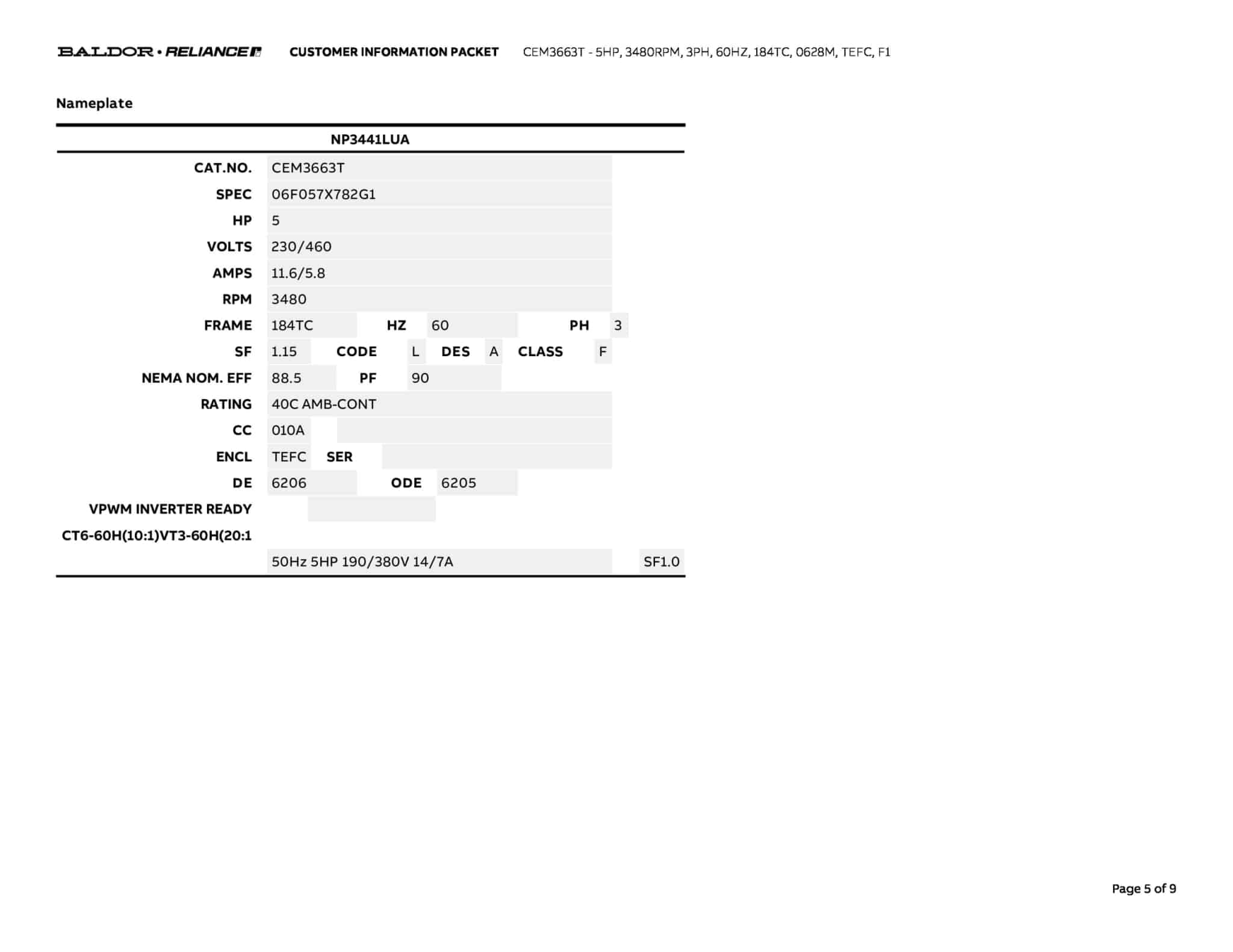 Rated Current: | 5.8 Amps @ 200 - 240 VAC Input, 2.9 Amps @ 400 - 480 VAC Input, | ||