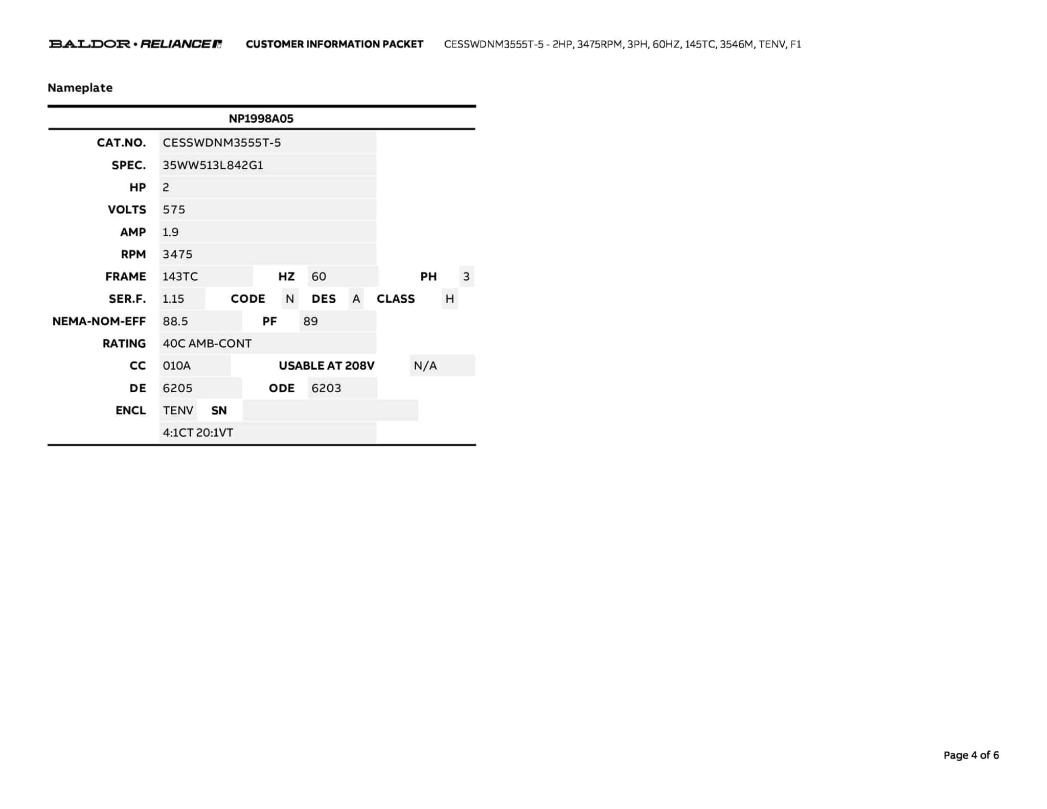 Manufacturer | Baldor | ||