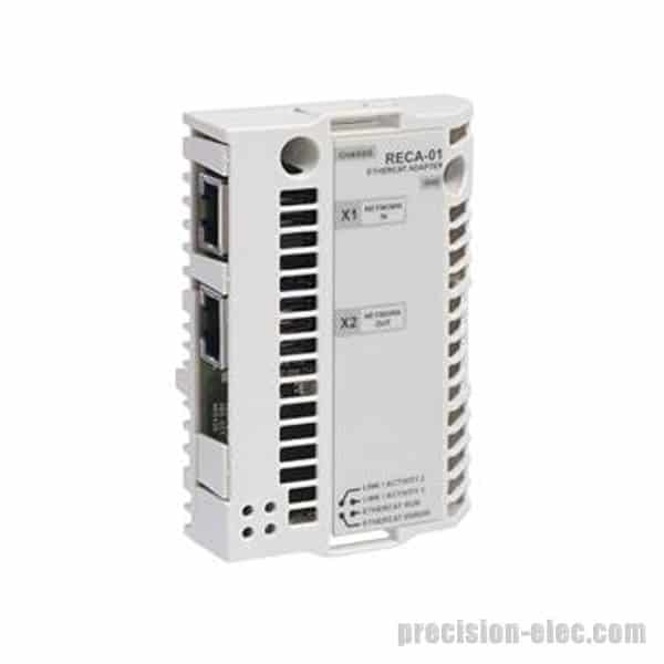 The adapter module supports the CANopen DSP 402 (Device Profile Drives and Motion Control) profile or the ABB Drives profile. The RECA-01 implements the EtherCAT state machine, four sync manager channels to control the access o the application memory, two watch dogs and specified EtherCAT services, addressing modes and FMMUs.