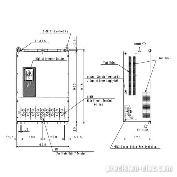 300 HP Hitachi SJ700 Series Open Chassis Enclosed Variable Frequency Drive | 400 - 480 VAC 3 Phase Input | 480 VAC 3 Phase Output | 440.0 Amps | SJ700-2200HFU2 - Image 3