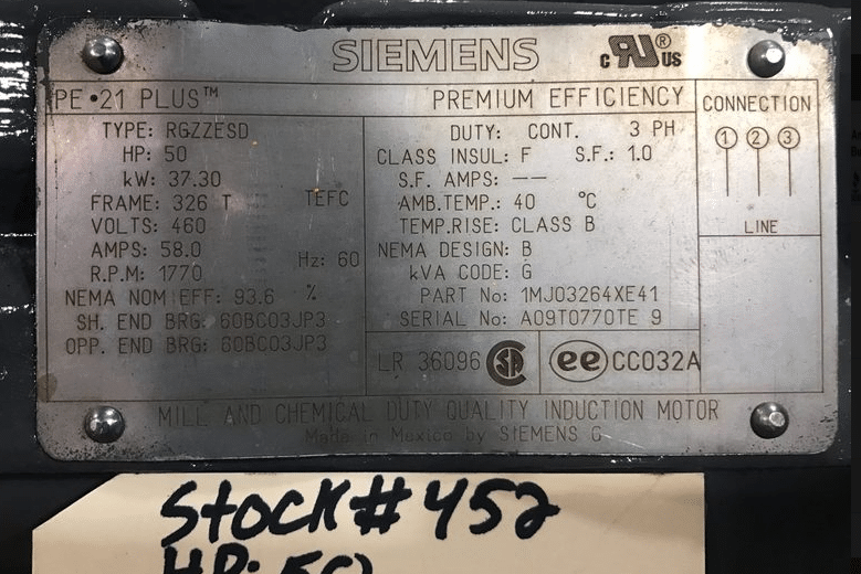 Siemens, 50 HP, 1800 RPM, 326T Frame, Explosion Proof Motor, TEFC